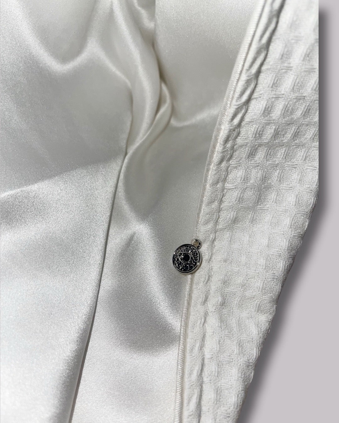 100% Mulberry Silk - A luxurious inner layer that protects the hair cuticle, reducing friction and preventing frizz - promoting shine, smoothness and strength.